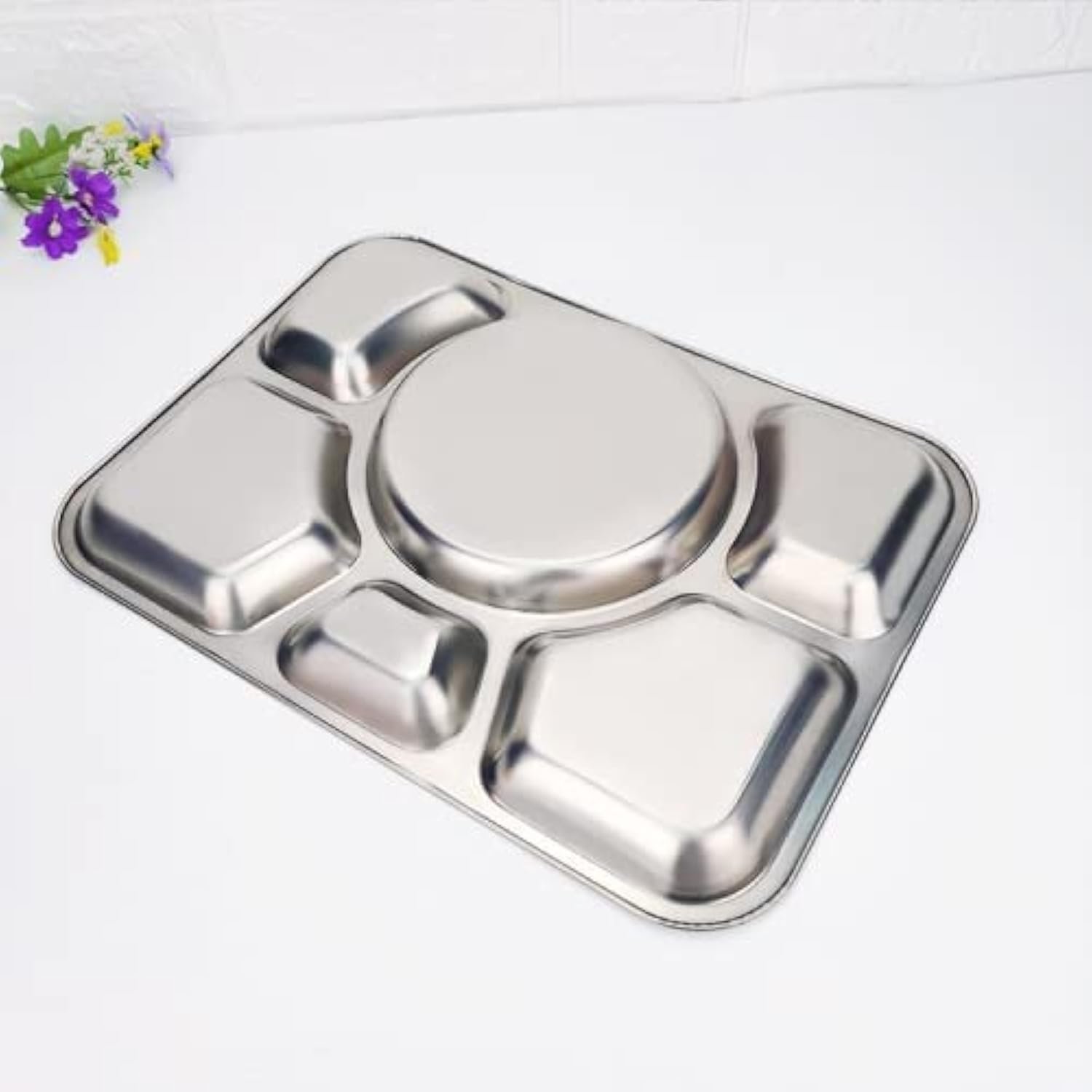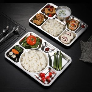 • 6 Compartment: Stainless steel trays are divided into six sections with no sharp edge, deep enough to fit sauce and dishes, allowing picky eaters to keep food from touching.