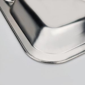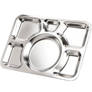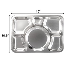 stainless steel dvided plates, measures 15″L x 10.6″W x 0.6″H. As the lunch plate suitable for students, and adults who are dieting at home or work. Warm Tips: The plate is large and heavy and please check the size carefully before purchase.