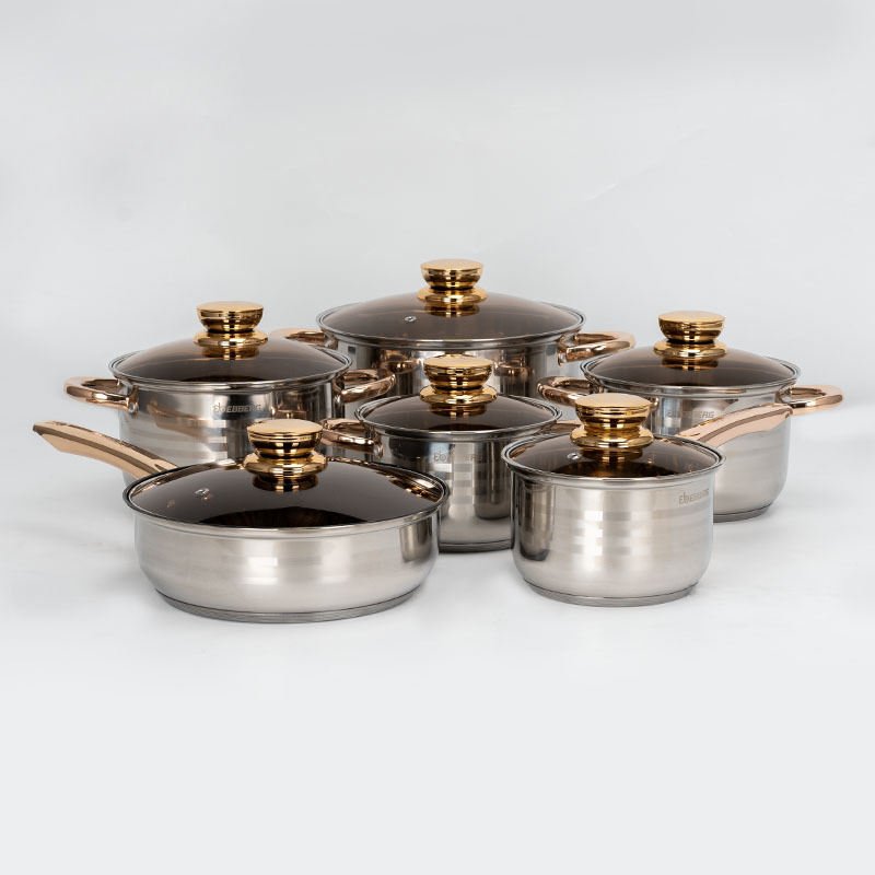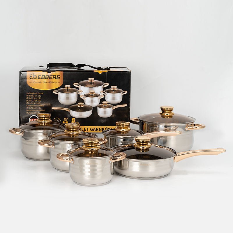 LIUCONG kitchen cookware sets, 12-piece BASIC stainless steel pots and pans, silver
