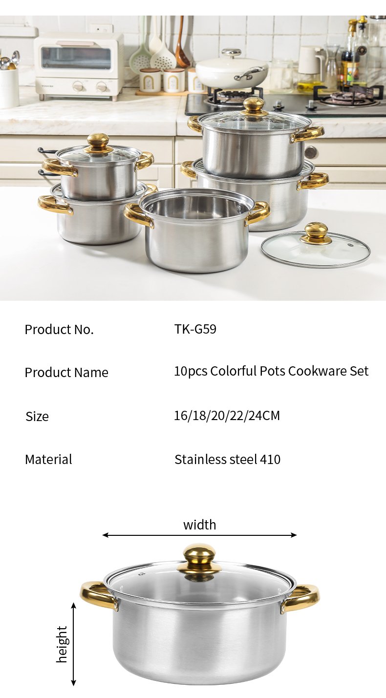 Wholesale 10pcs Stainless Steel Pots and Pans Gold Handle Soup Pots Cooking Pots Milk Casserole Set Kitchen Cookware Sets